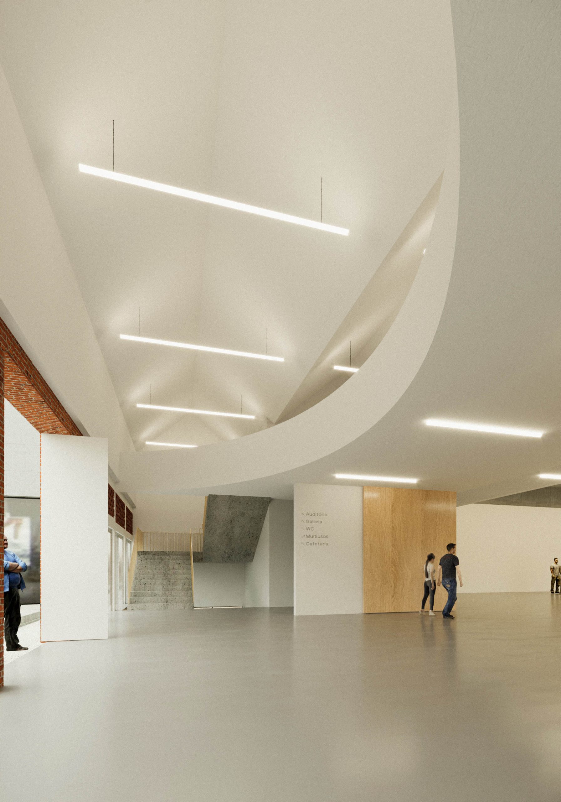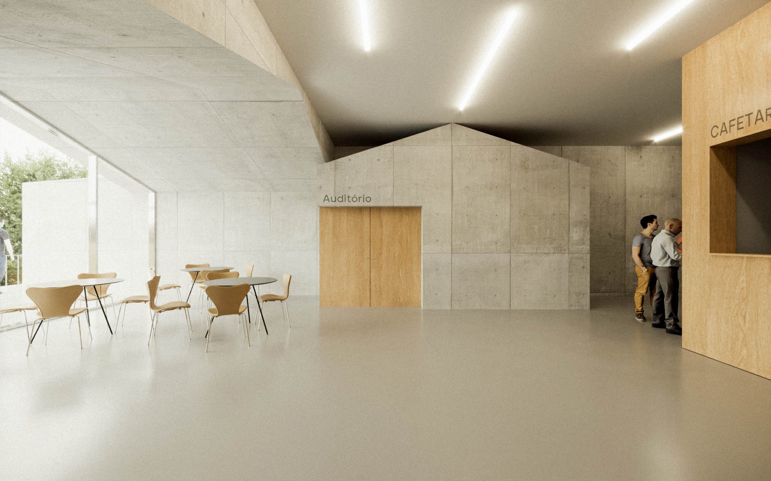 Era condição do concurso a manutenção das fachadas do mercado municipal de Abrantes. Esta exigência, transforma a antiga fachada numa espécie de arquétipo, um sinal reconhecível mas que será contudo ressignificado. A exploração do tema do arquétipo surge a partir desta premissa. A típica forma de casa com telhado de duas águas, provavlemente o arquétipo mais reconhecido e reproduzido, serve como base à marcação dos diferentes espaços e da própria identidade do edifício. Estratificado, cada piso representa uma função diferente, sendo o piso da rua correspondente à nave multiusos, criando um contínuo de espaço público, e que mantém a relação da antiga fachada com a sua função de edifício público. Ao mesmo tempo, criam-se plataformas, escadas, e percursos que vencem a grande diferença de cota entre a rua e o parque, tornando o edifício em corpo percorrível e apropriável ao invés de grande ícone intocável.